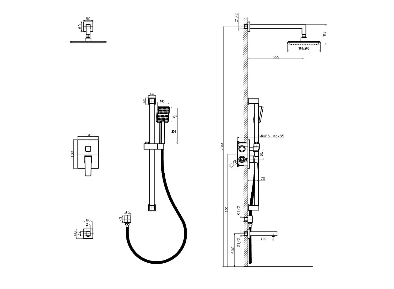 RUSH Thira TR3635-60Grey Встроенная душевая система
