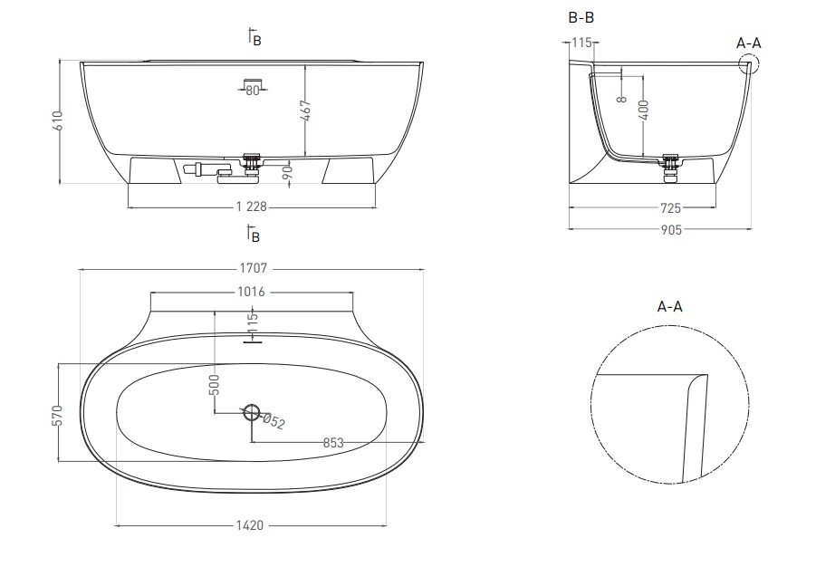 Когда хочется изысканной простоты, простора и безграничного комфорта, внимание невольно переключается на пристенную ванну ALDA WALL 170. Выполненная по технологии минерального литья, она воплотила в себе главные принципы минималистичного дизайна, построенного на контрасте прямых и эллиптических линий.