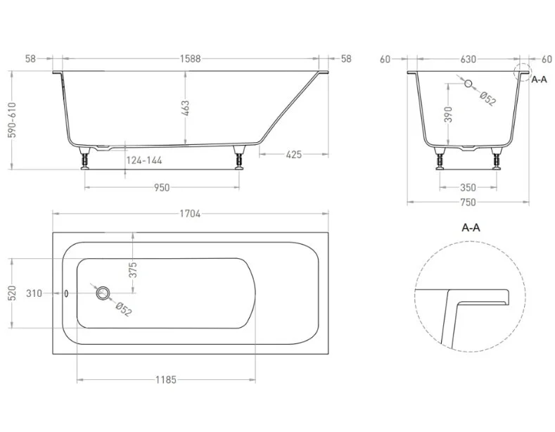 Salini 102017M ORLANDA 170x75 Встраиваемая ванна с прямоугольной чашей, регулируемые ножки