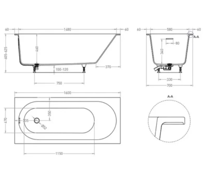 Salini 102416M ORNELLA KIT 160x70 Встраиваемая ванна с овальной чашей, регулируемые ножки, донный клапан "Click-Clack" белый, сифон, интегрированный слив-перелив