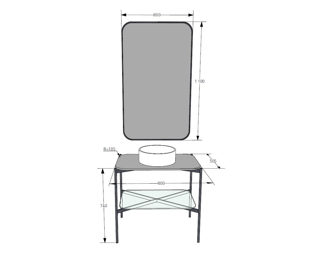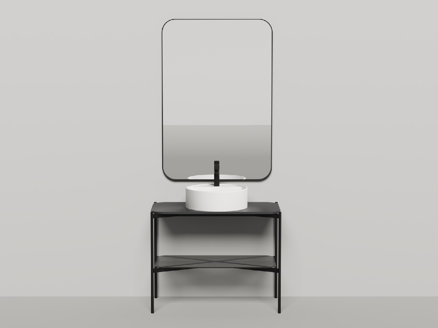 Консоль, предназначенная для установки накладных раковин из ассортимента Salini, изготовлена из металла, выполнена в благородном матовом чёрном цвете.