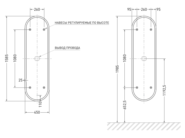 Salini 27MA.02.450.1585 Зеркало для ванной ARMONIA овальное двойной LED подсветкой  Зеркало, клемма WAGO, фоновая  и фронтальная подсветка 3в1 3000-6000К  блок питания, сенсорный включатель, комплект крепления,   регулируемые навесы