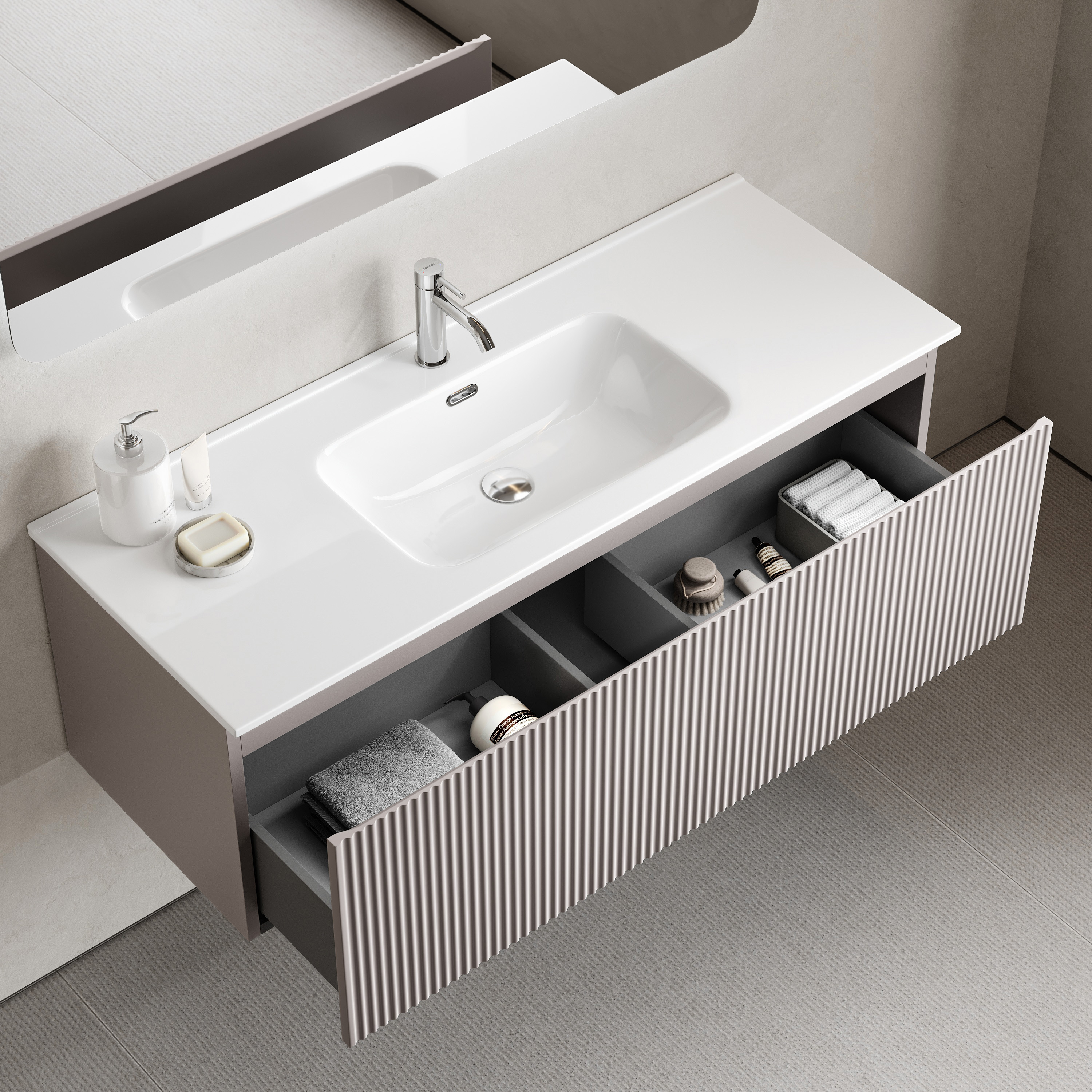 Sancos SNR1.0120SM Тумба подвесная SANCOS Snob R 1.0 1195х445х406, c одним ящиком оснащенным доводчиками, Doha Soft , арт.SNR1.0120SM