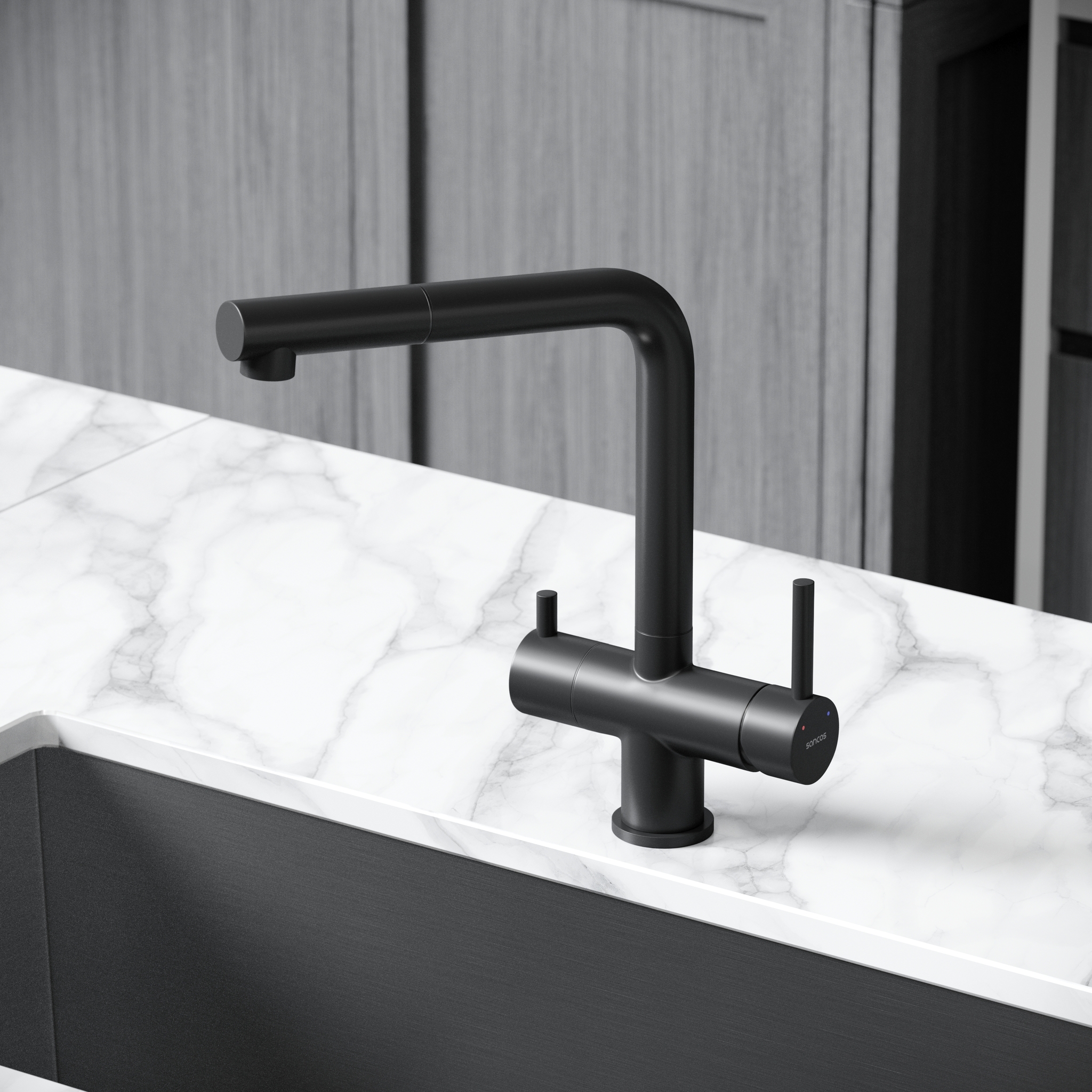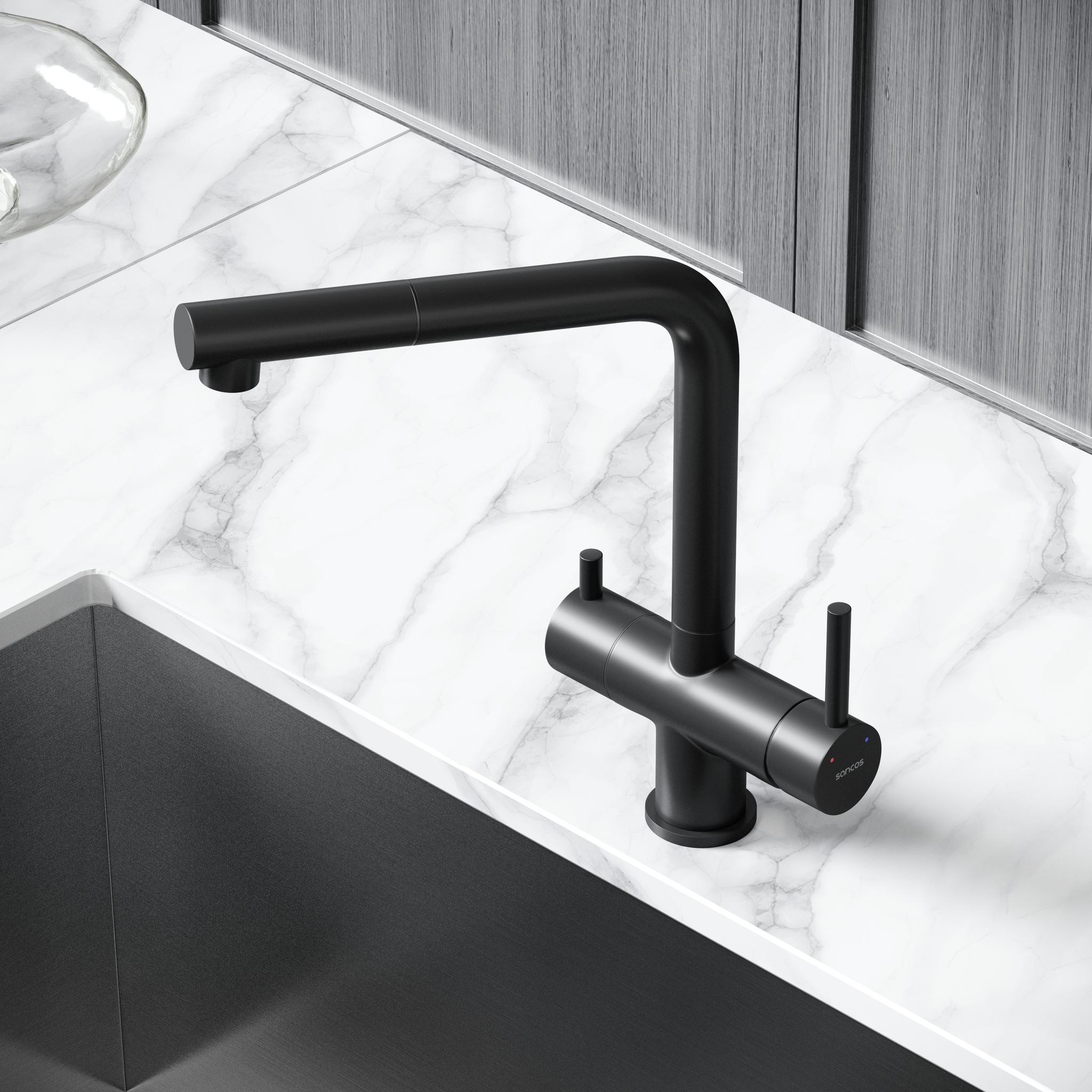 Sancos Spin SC4015MB Смеситель для кухни с краном для фильтрованной воды, цвет: черный матовый