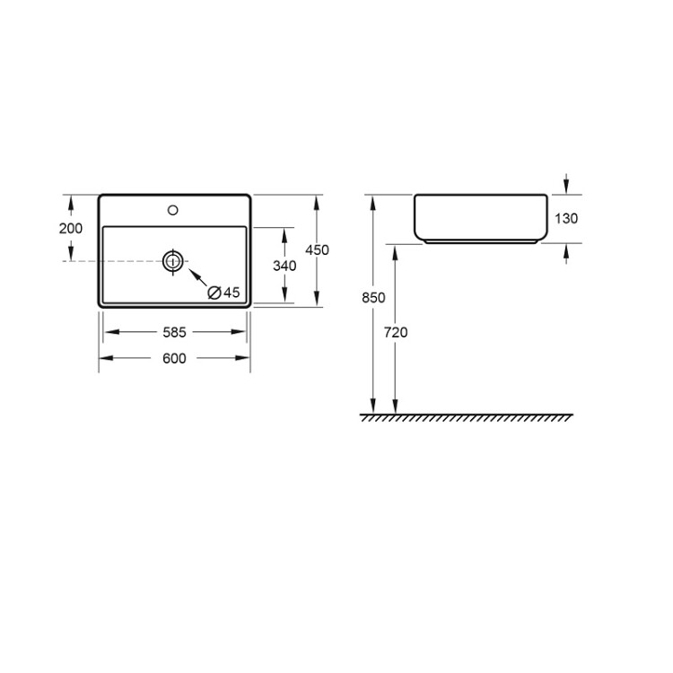Splendy Memory ME10560T1NW Раковина шгв 600*450*130, отверстия для смесителя-1, цвет-белый