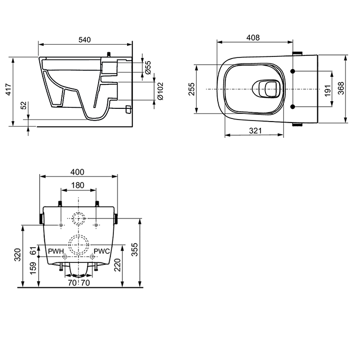 TECE 9700205 TECEneo Унитаз-биде подвесной 540х368х365, безободковый, смыв Tornado, с крепежом и комплектом подкл., цвет белый
