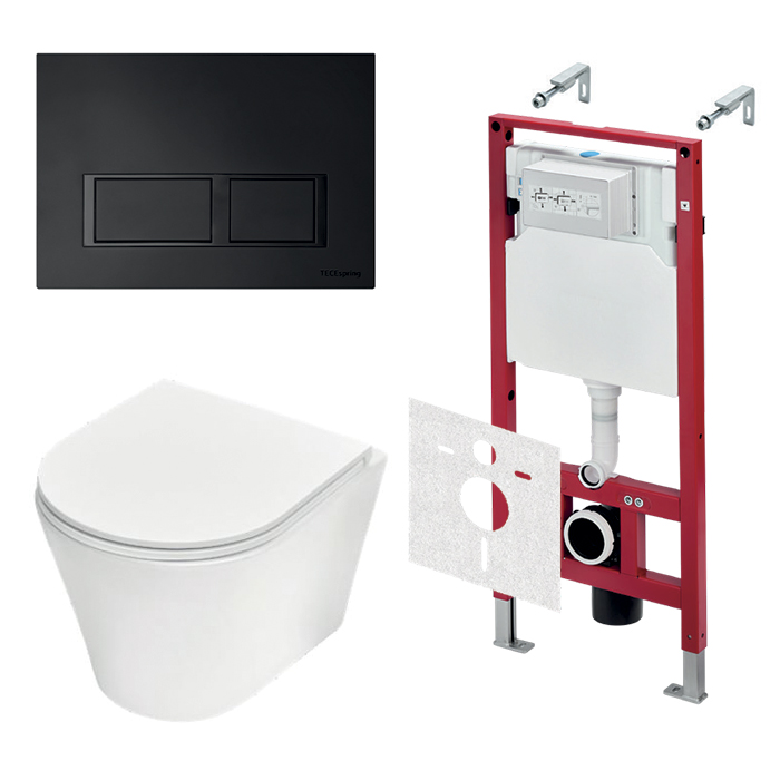 TECE K401204WCK TECEspring Base Комплект 4 в 1 инсталяция, панель смыва с прямоугольными кнопками, черн. мат., унитаз модель K