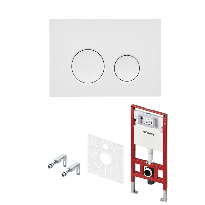 TECE S401110 TECEspring комплект 4 в 1 Застенный модуль,панель смыва с круглыми кнопками, цвет белый гляянцевый