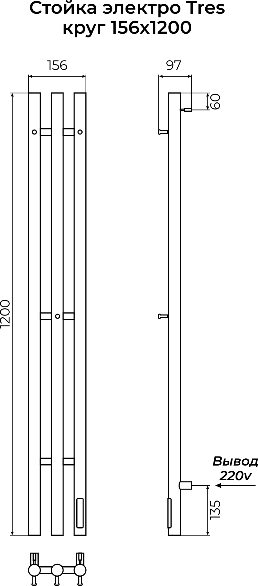 TERMINUS 4670078566379 Стойка электро TRES круг1200, оружейная сталь