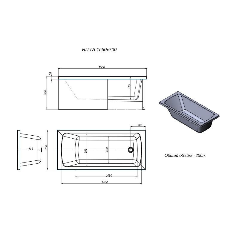 Timo RITTA15570 Акриловая ванна TIMO RITTA 1550*700*580 (RITTA15570)
