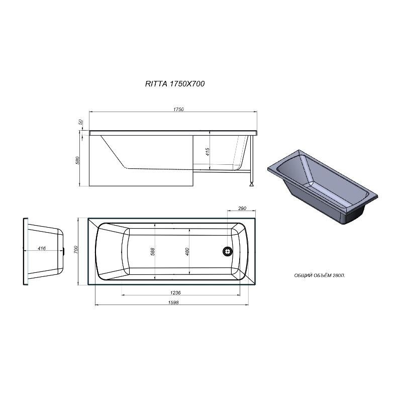 Timo RITTA17570 Акриловая ванна TIMO RITTA 1750*700*580 (RITTA17570)