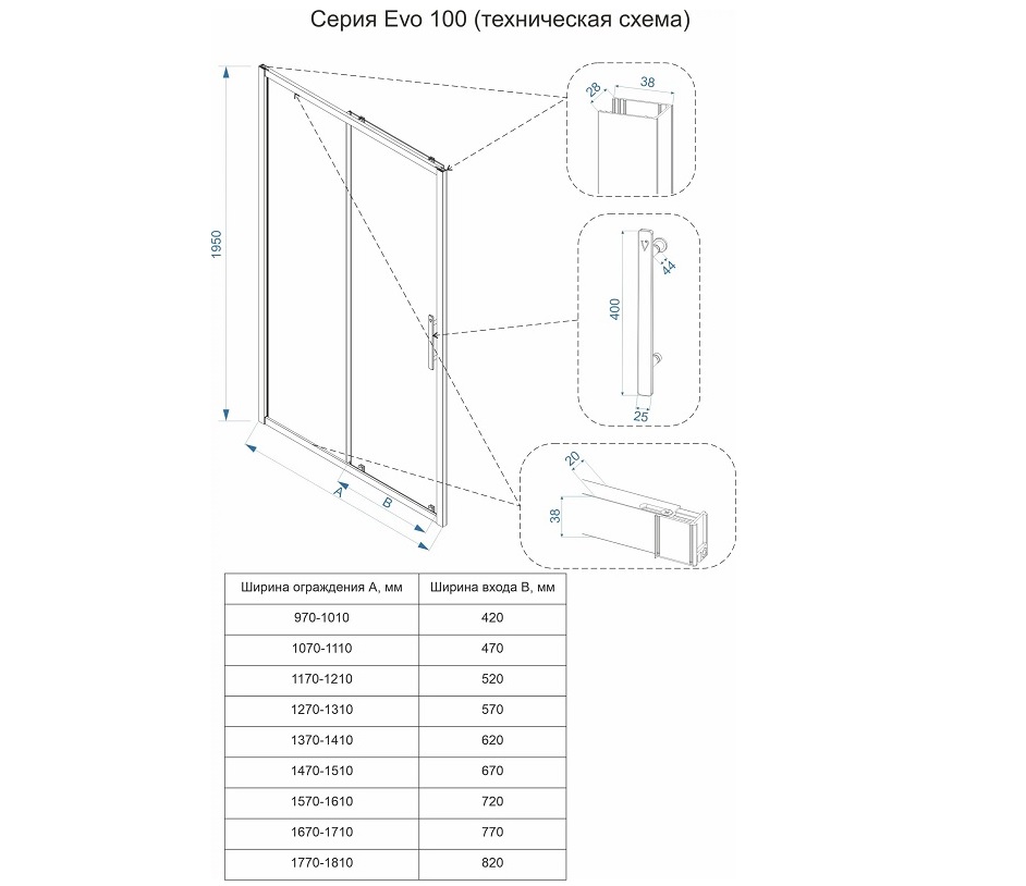 Veconi E1-B-120-01-C9 Душевая дверь Стекло прозр., 6 мм (уст.1170-1210/1950, черн.мат.)