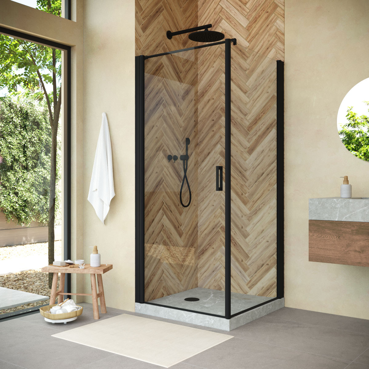 Vegas Glass EP-FIS NOVO 90 02М 01 L Душевой уголок, профиль черный матовый, стекло прозрачное, ручка Quadro