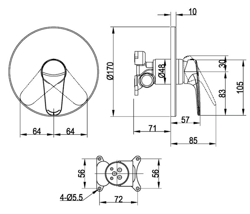 Villeroy&Boch O'Novo Start TVS10535211061 Смеситель для душа, Villeroy&Boch, O.Novo Start, тип открывания воды-рычажный, тип регулирования воды-керамический картридж, тип установки-встраиваемый, отверстия для монтажа-1, внутренняя часть-необходимо за