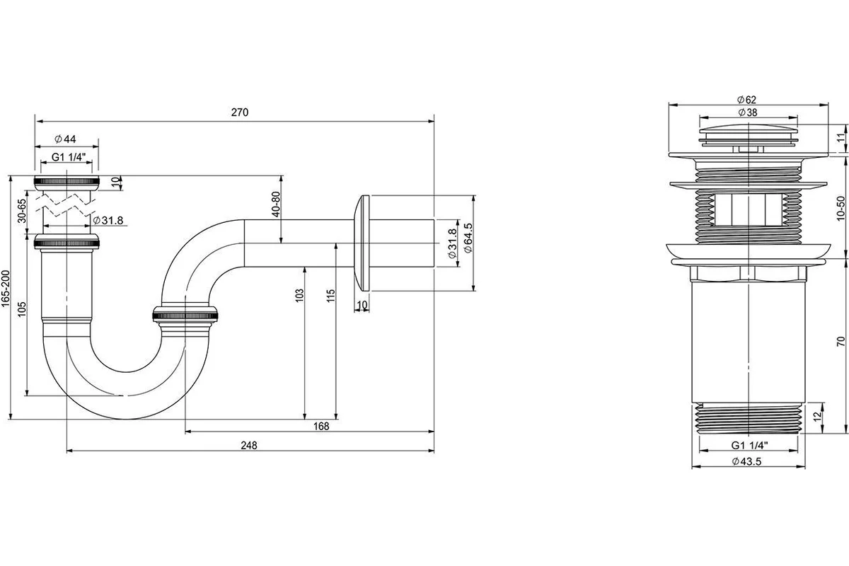 Wellsee Drainage System 182102001 Сифон для раковины, набор 2 в 1