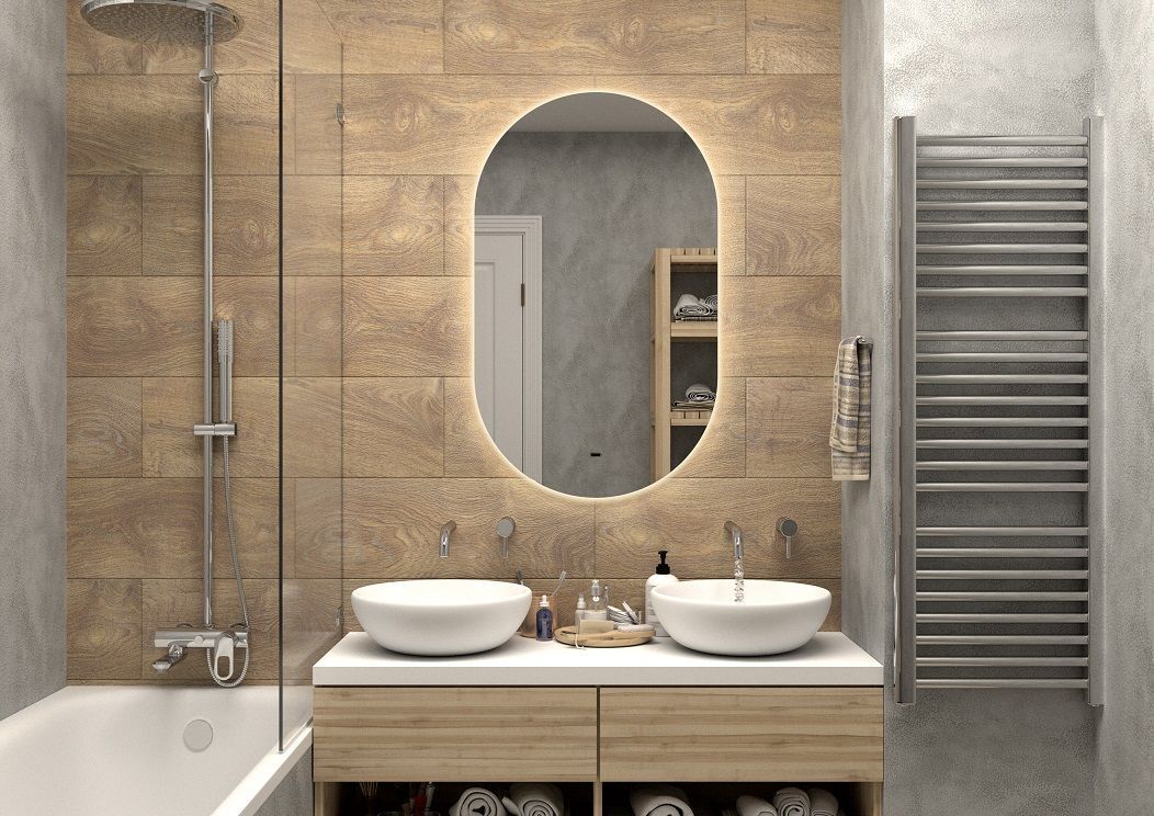 Зеркало, оснащенное светодиодной LED подсветкой с диммером